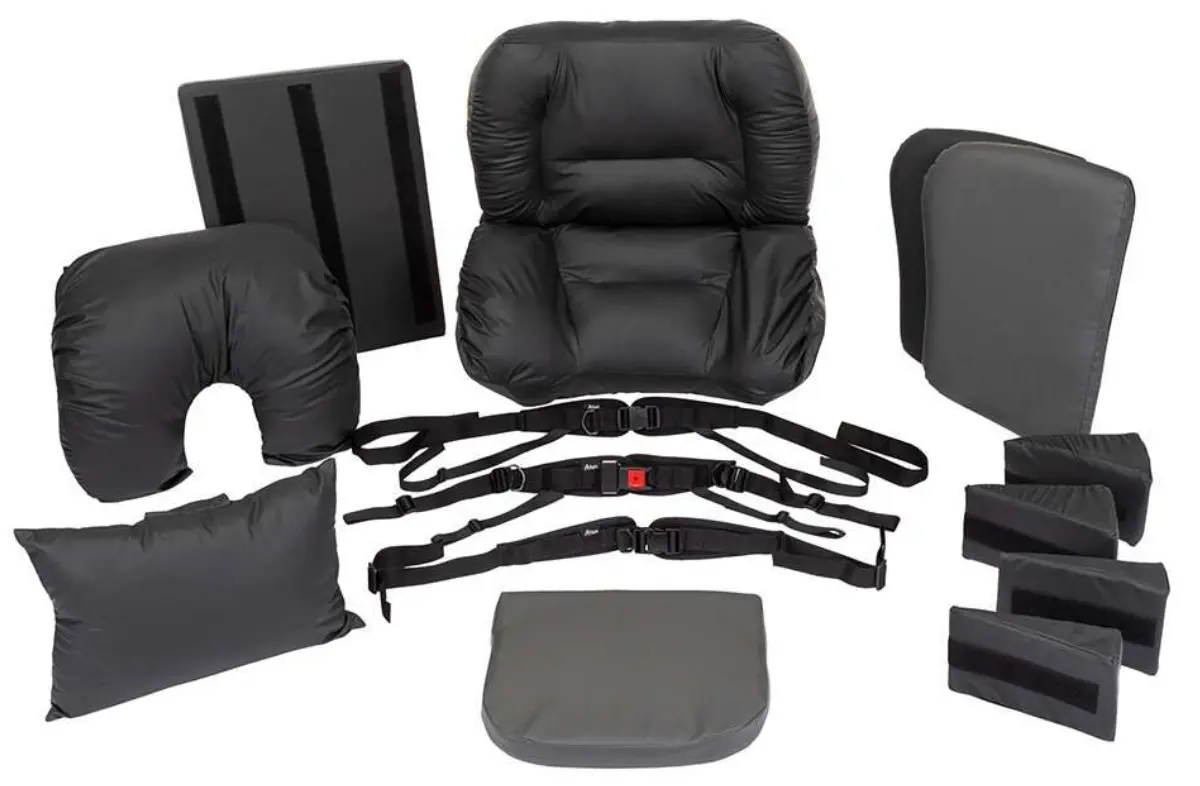 For even more support and comfort, the standard backrest cushions can be swapped out for waterfall, lateral or cocoon backrests, to suit the postural needs of each individual client. Wedges and other supporting cushions are also available to ensure correct body positioning in the chair.