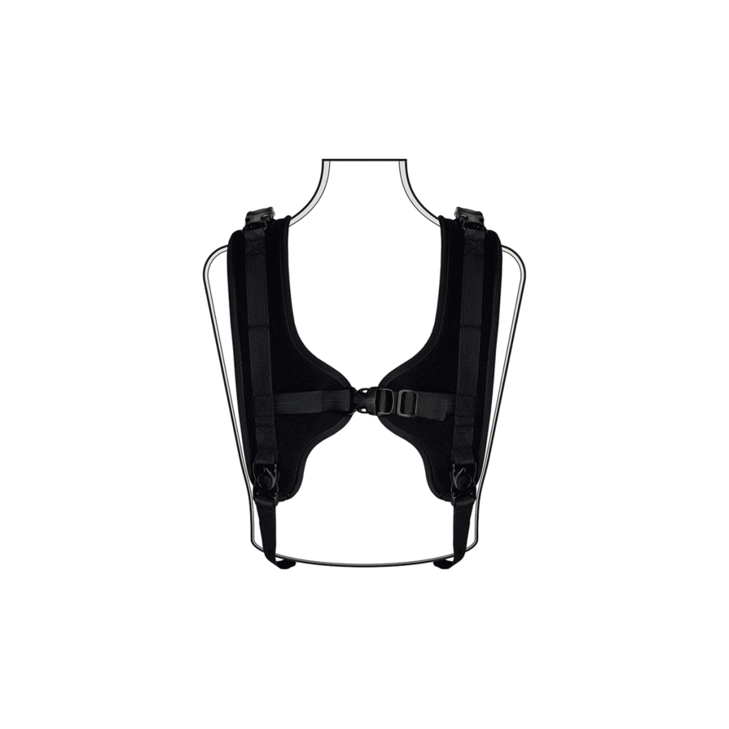 • For ease of adjustment, this harness is fitted with side release Cam-lock Buckles to the upper straps.
