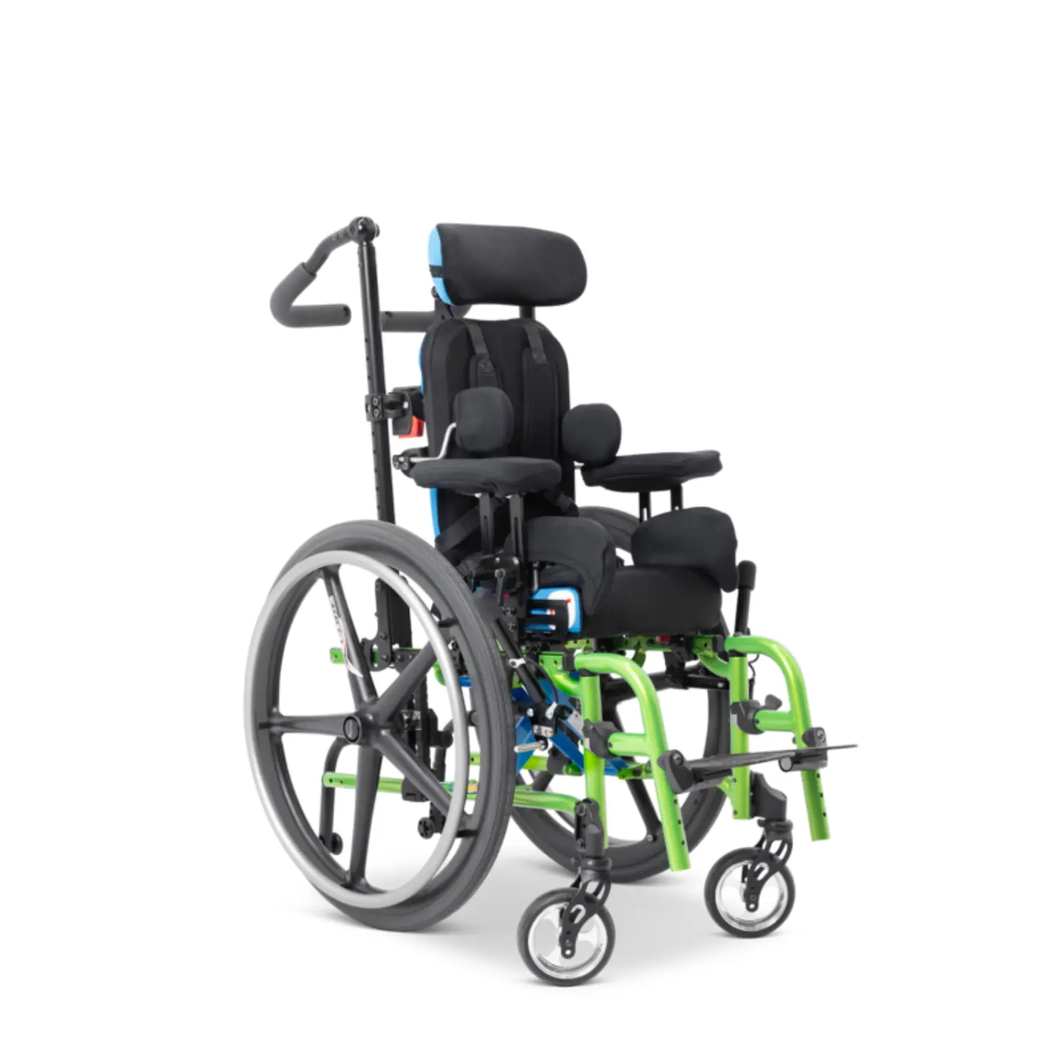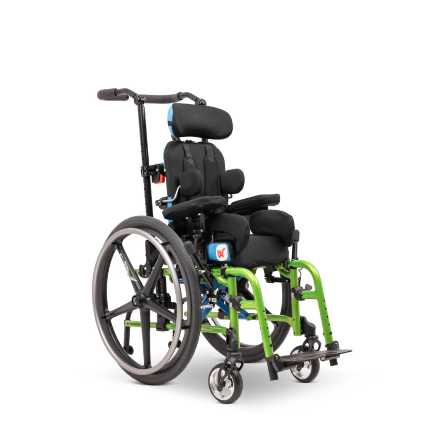 Wonderseat Bounce offers a lower level of support compared to Space; however, it is not an active user system and care should be taken if considering this system for a child who is self-propelling their wheelchair.